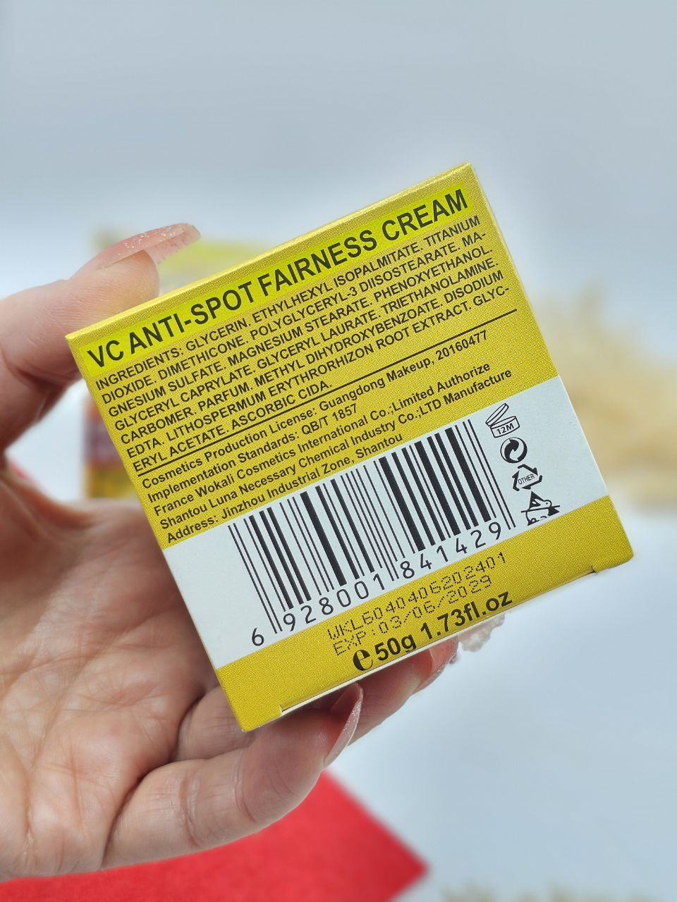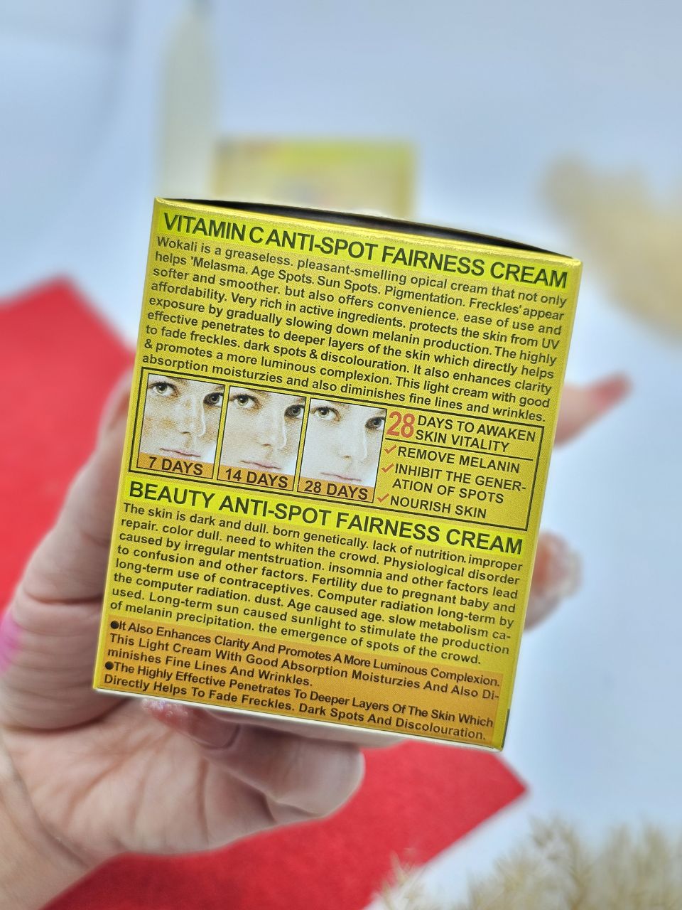 با ترکیبات غنی سفید کننده و از بین برنده لک. به طور موثر فعالیت تیروزیناز را کاهش میدهد. ملانین را به طور مداوم تجزیه میکند و از ایجاد لکههای تیره، کلوآسما، کک و مک و لکههای ناشی از آفتاب جلوگیری میکند. استفاده مداوم میتواند از لکههای کبدی ناشی از اشعه ماوراء بنفش جلوگیری کند. پوستی سالم و شفاف را حفظ کند. این کرم با ترکیبات سفید کننده و مرطوب کننده غنی شده است که به سرعت به داخل کوتیکولها نفوذ میکنند، ملانین را از بین میبرند، پوست کدر، زرد و ناهموار را بهبود میبخشند و توانایی سفید کنندگی آن را افزایش میدهند و پوست را صاف، مرطوب و کشسان نگه میدارند.